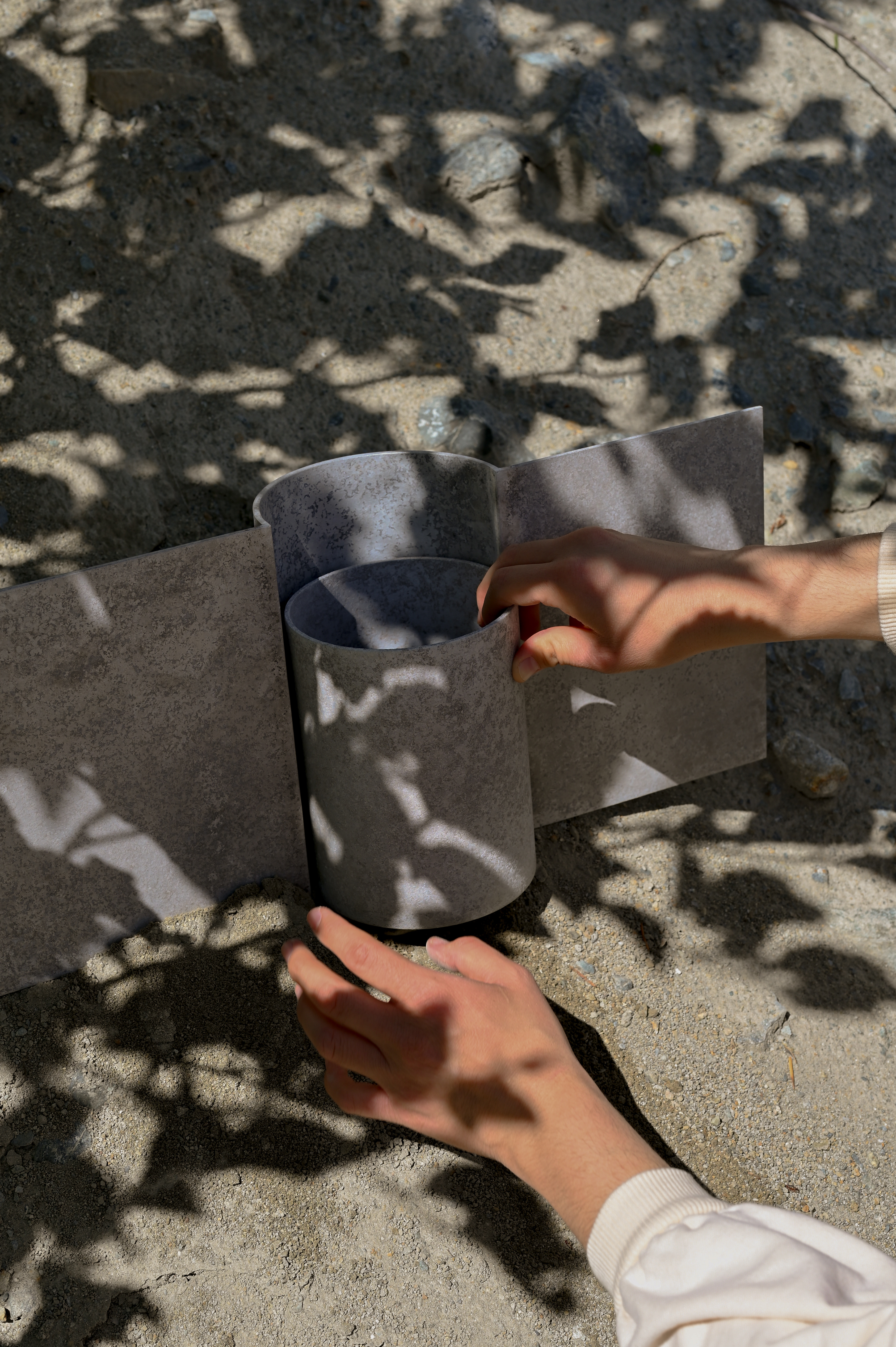 Peel Vase is a collaborative object exploration by Marcela Trejo and Alyssa Lewis. Peel Vase 01 is the first vase of the Peel Vase Series. The Peel Vase Series is conceptually connected to the structure of a flower’s stem and the peeling away of its skin layer by layer, while formally it frames and embraces the flora held within. The vase and peels are made of raw aluminum transformed by a unique handmade process that creates tactile warmth and unexpected texture.