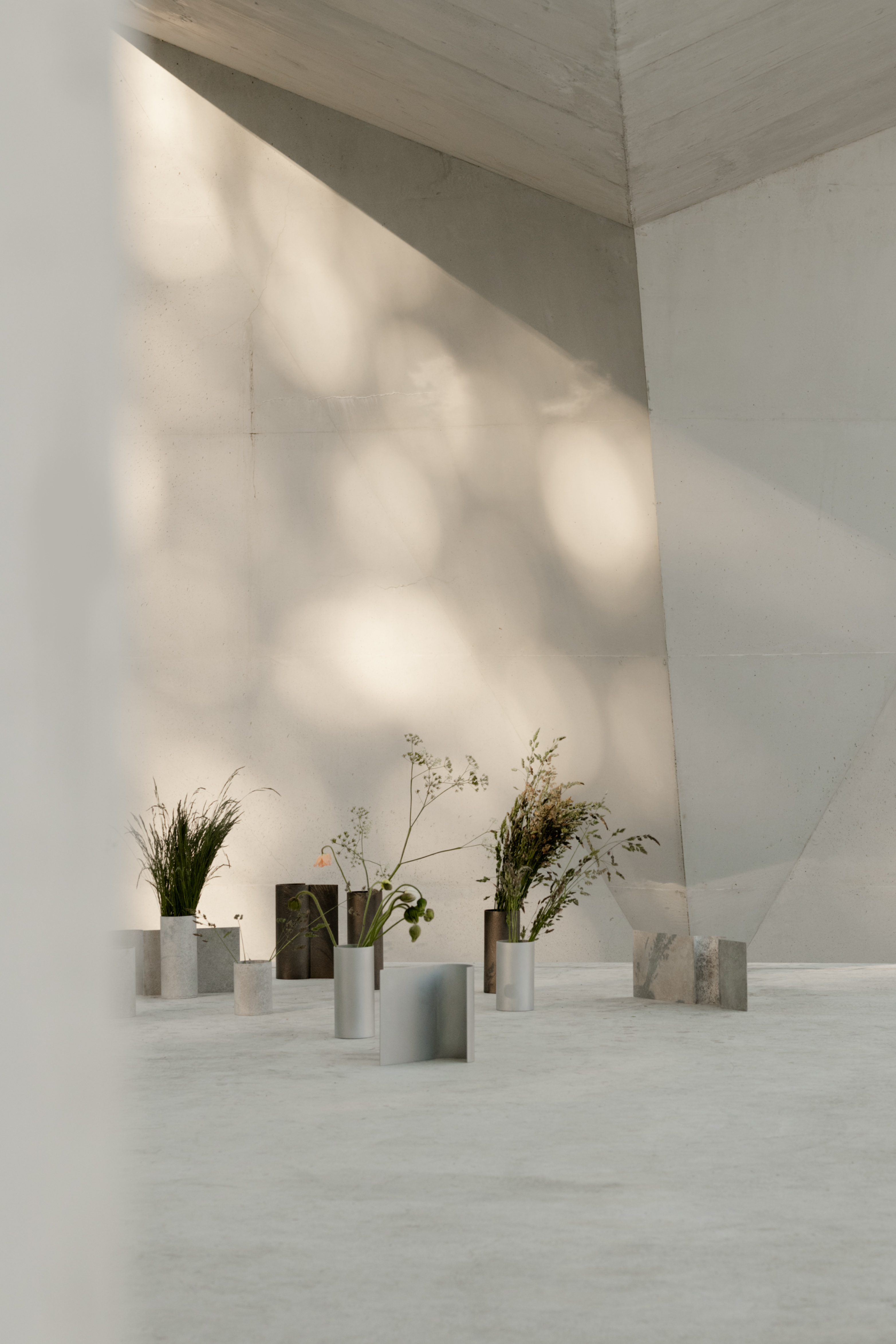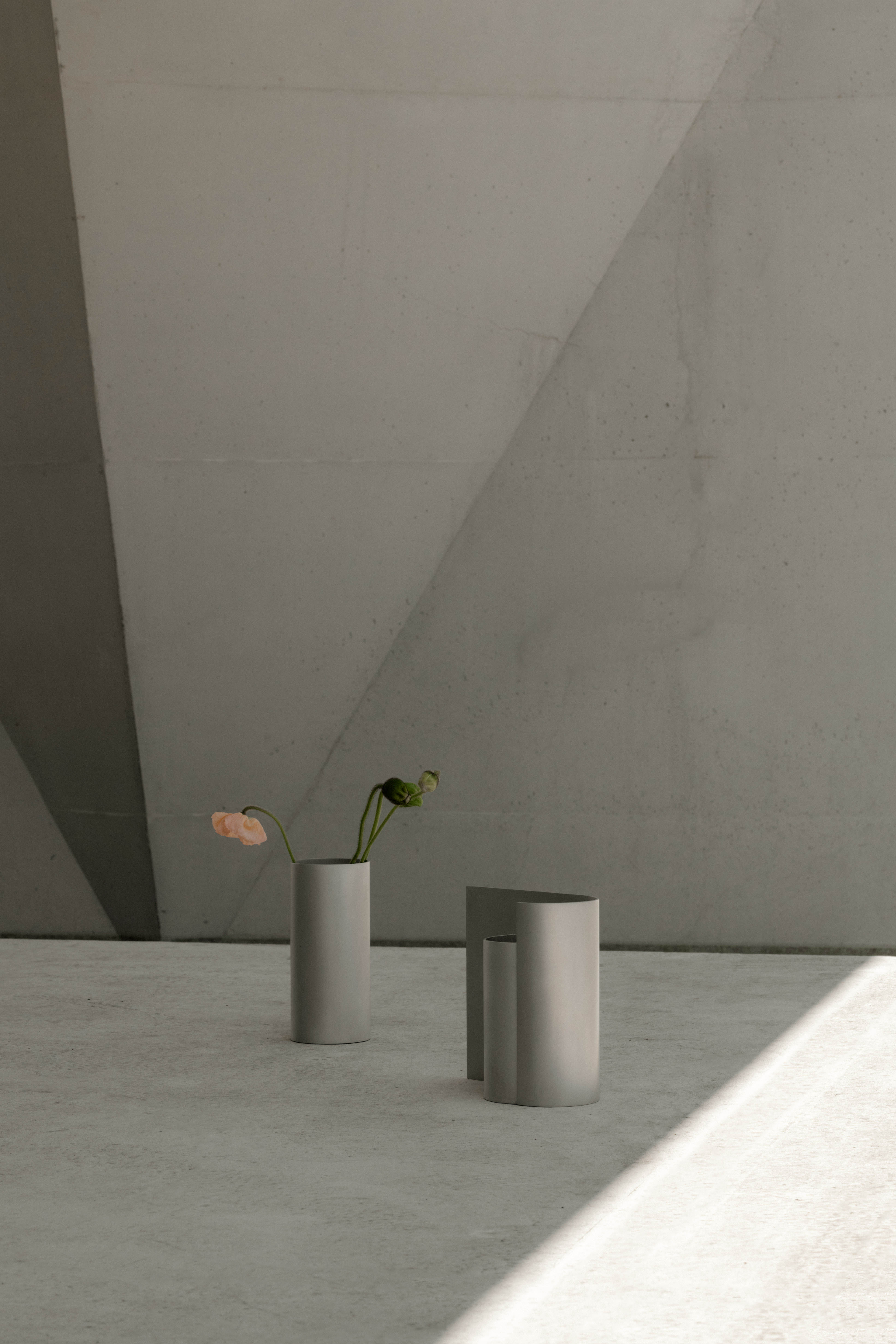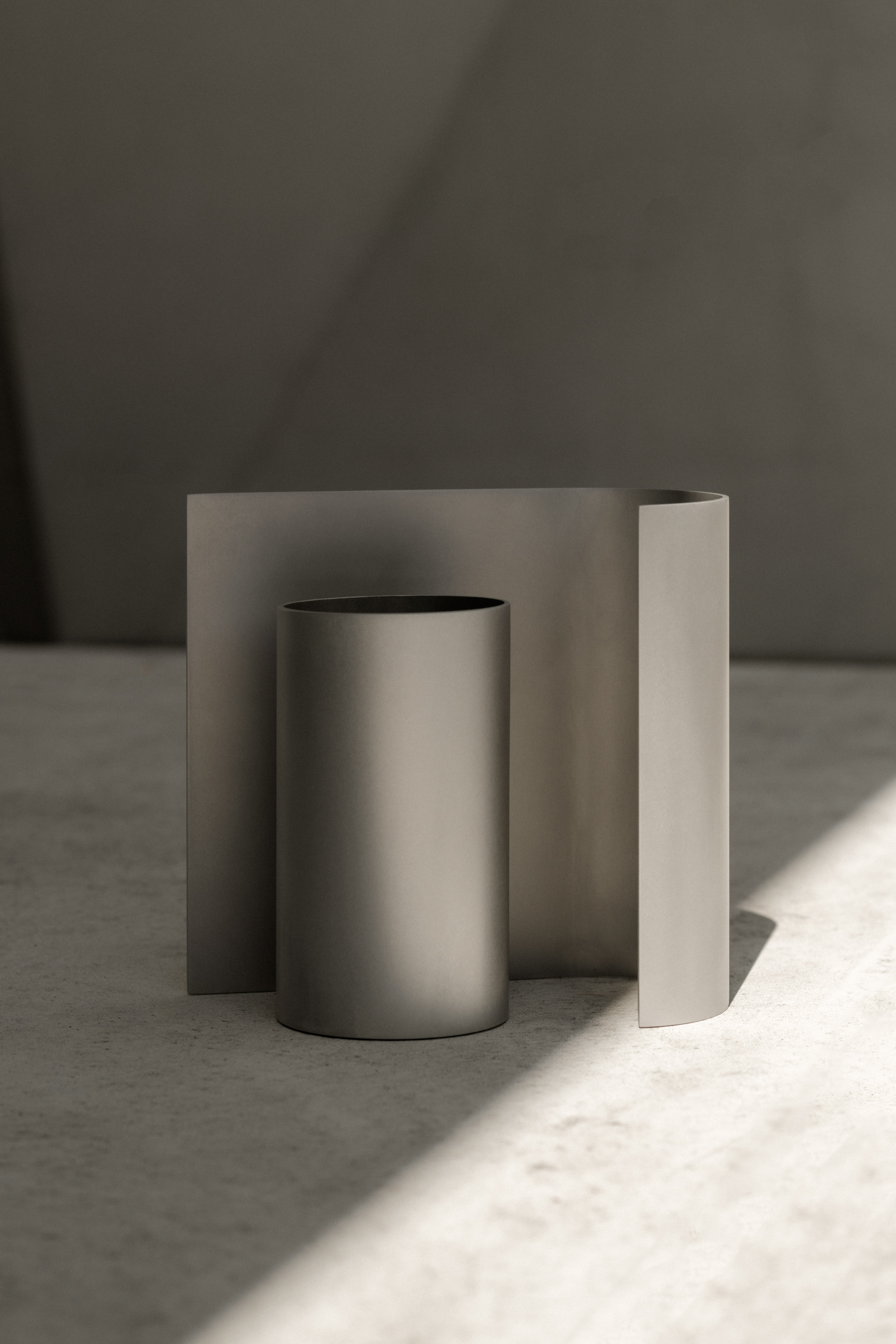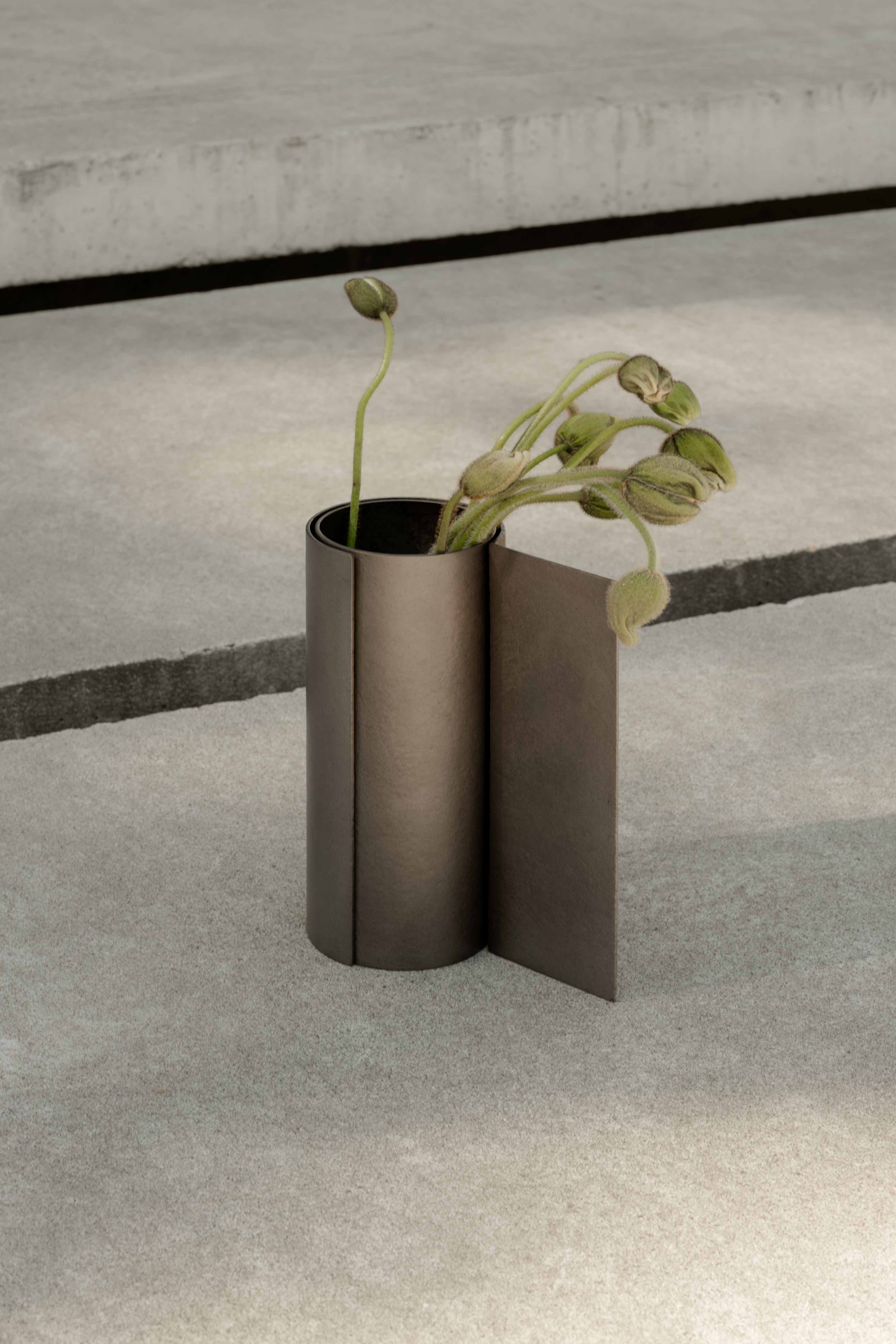 The Peel Vase Series is a three part vase series by Marcela Trejo and Alyssa Lewis. It explores the aesthetic and functional aspects of a vase and the framing of the flora within. The Peel Vase Series is composed of cylinder vases at varying heights that can be surrounded by any of the three sculptural peel forms. Together they are made of aluminum in three different finishes and can be combined in multiple configurations of texture, tone, and shape. The series references the structure of the stem of the flora it holds, where cylindrical forms and a secondary skin simultaneously separate and connect.