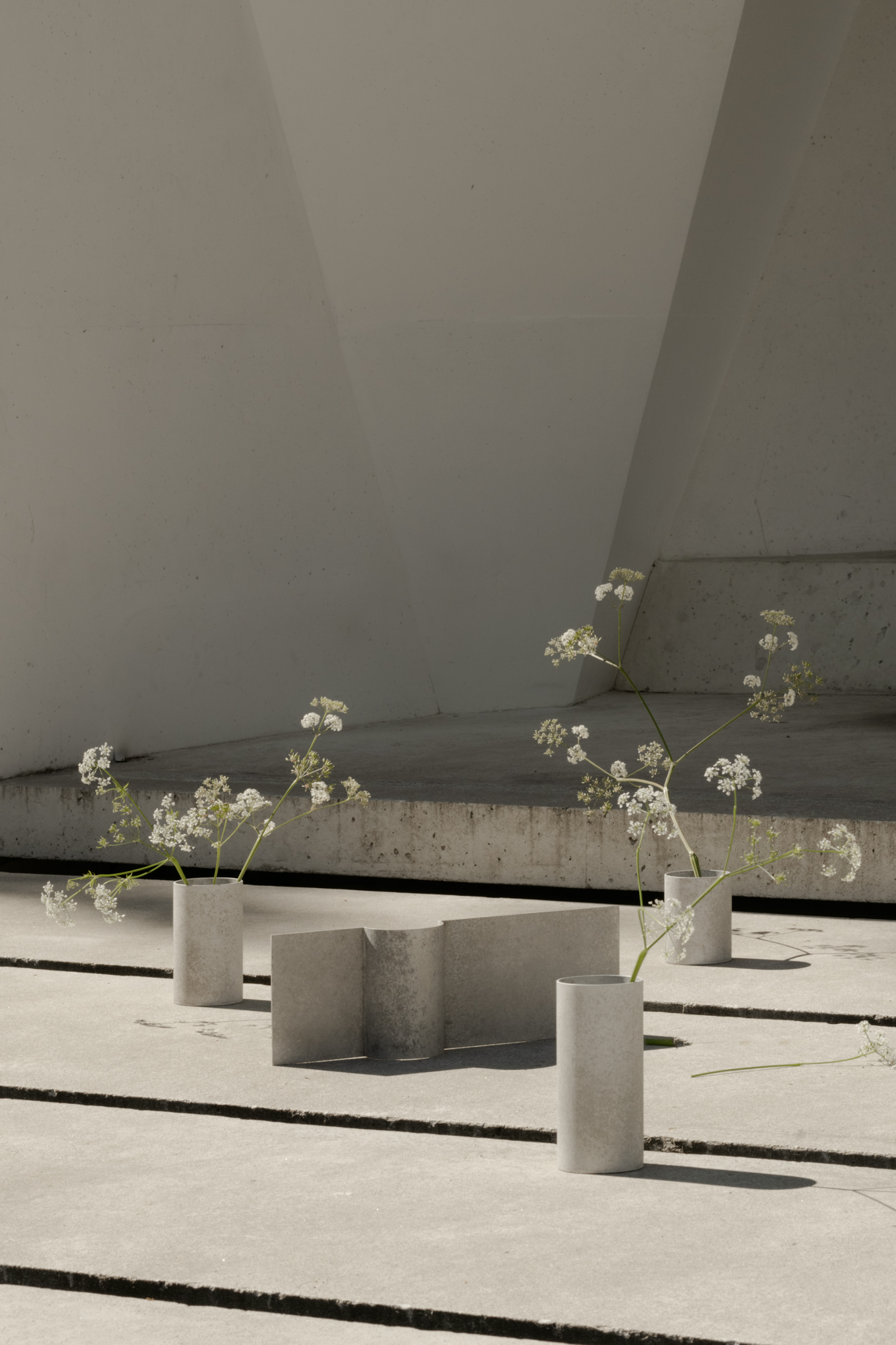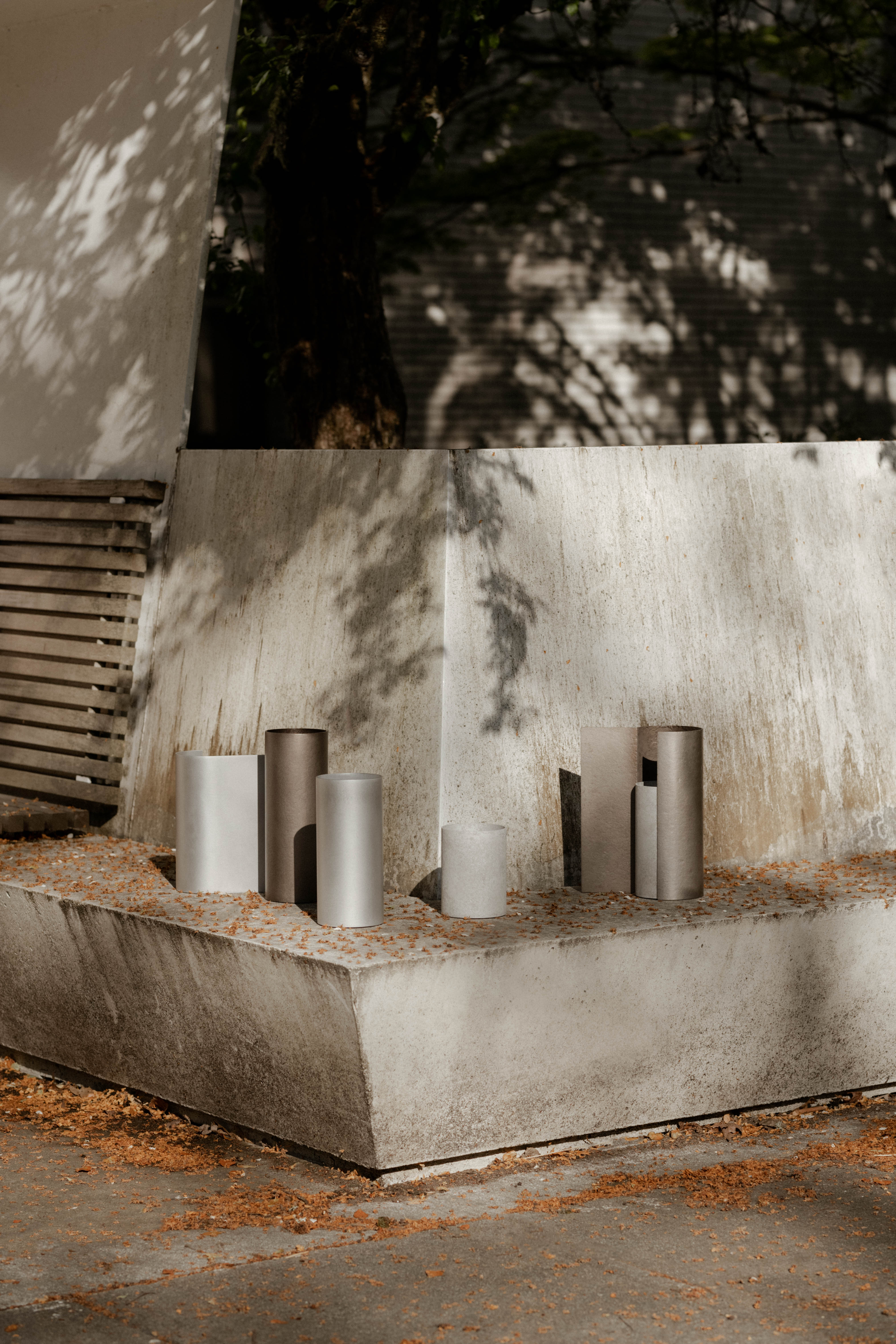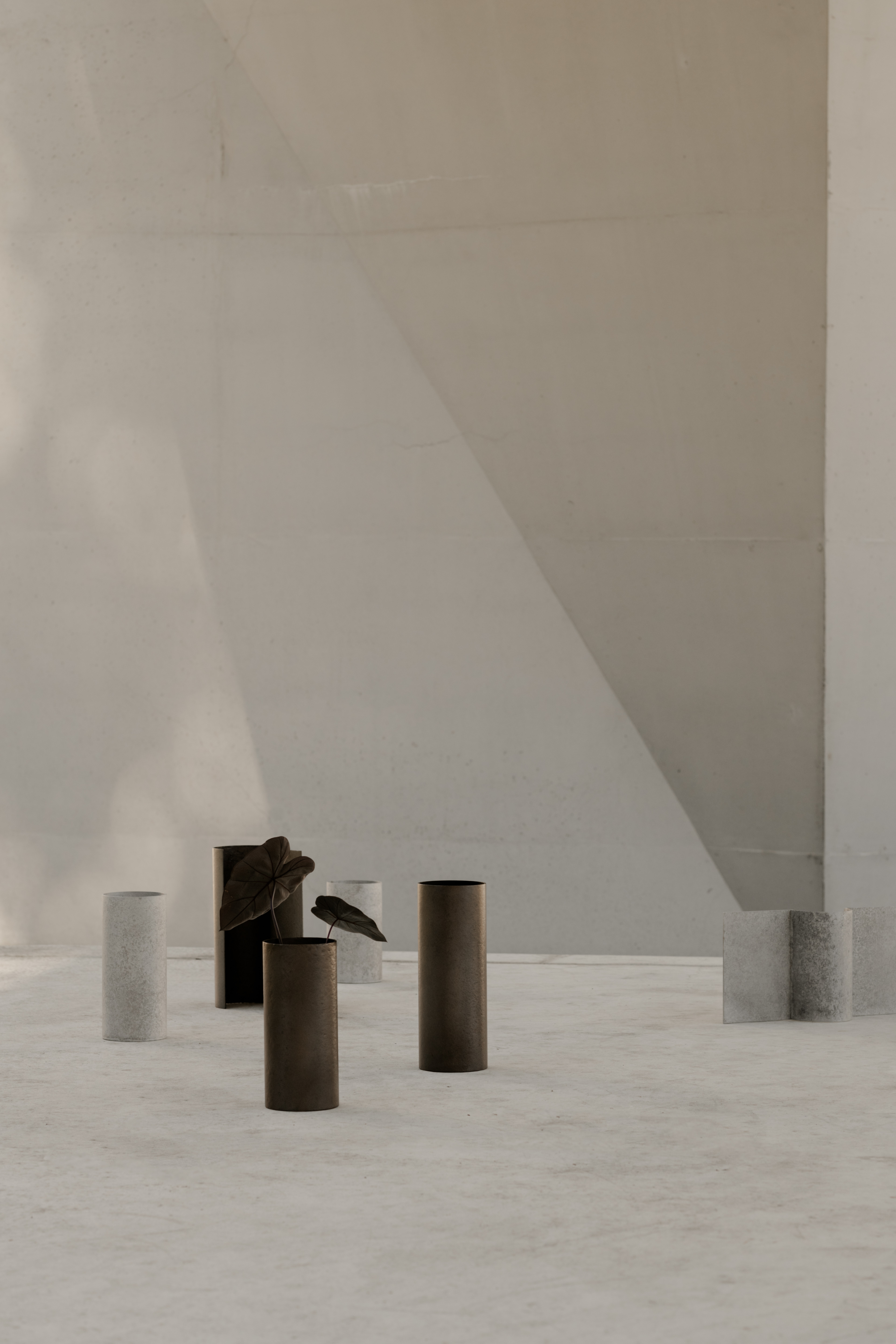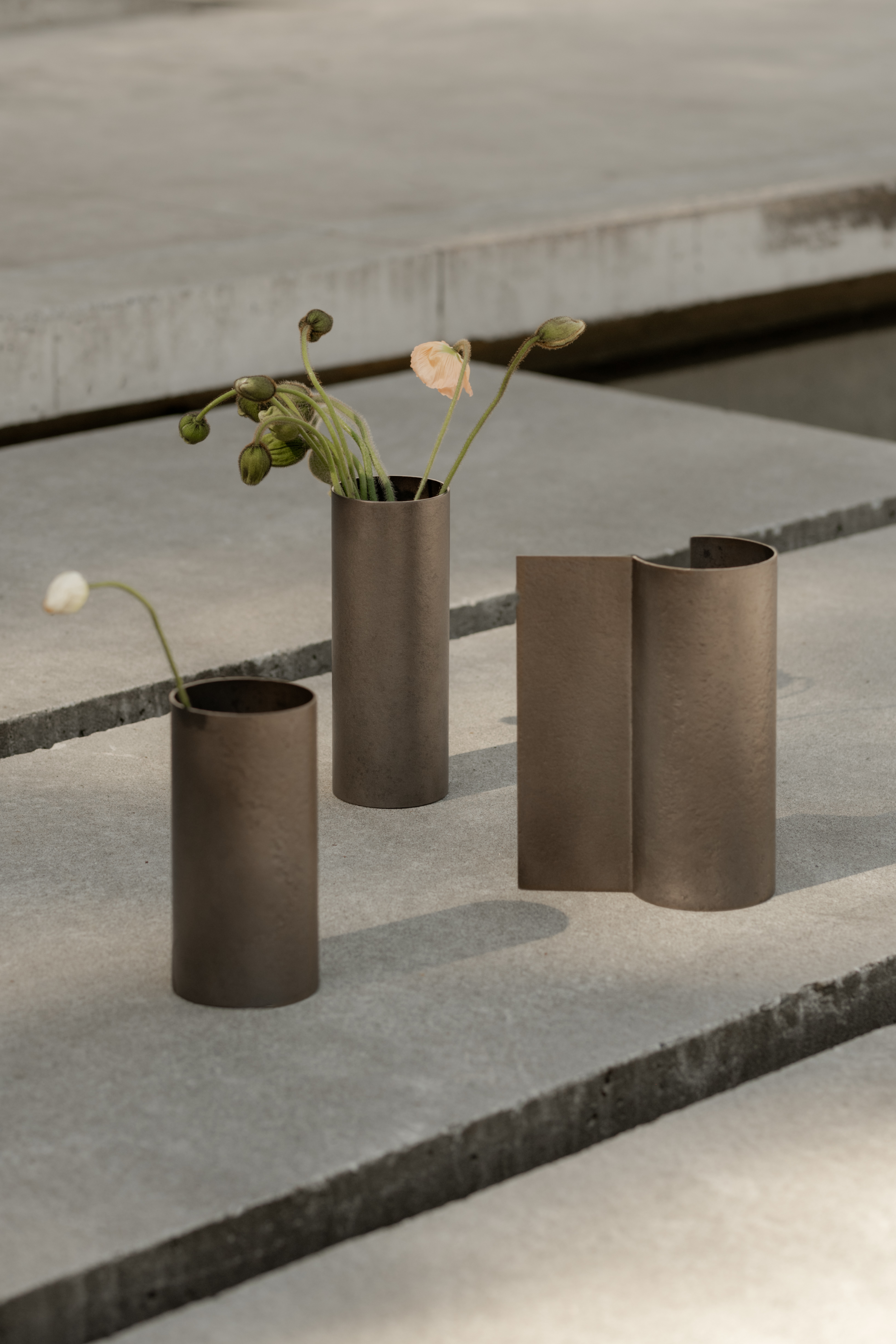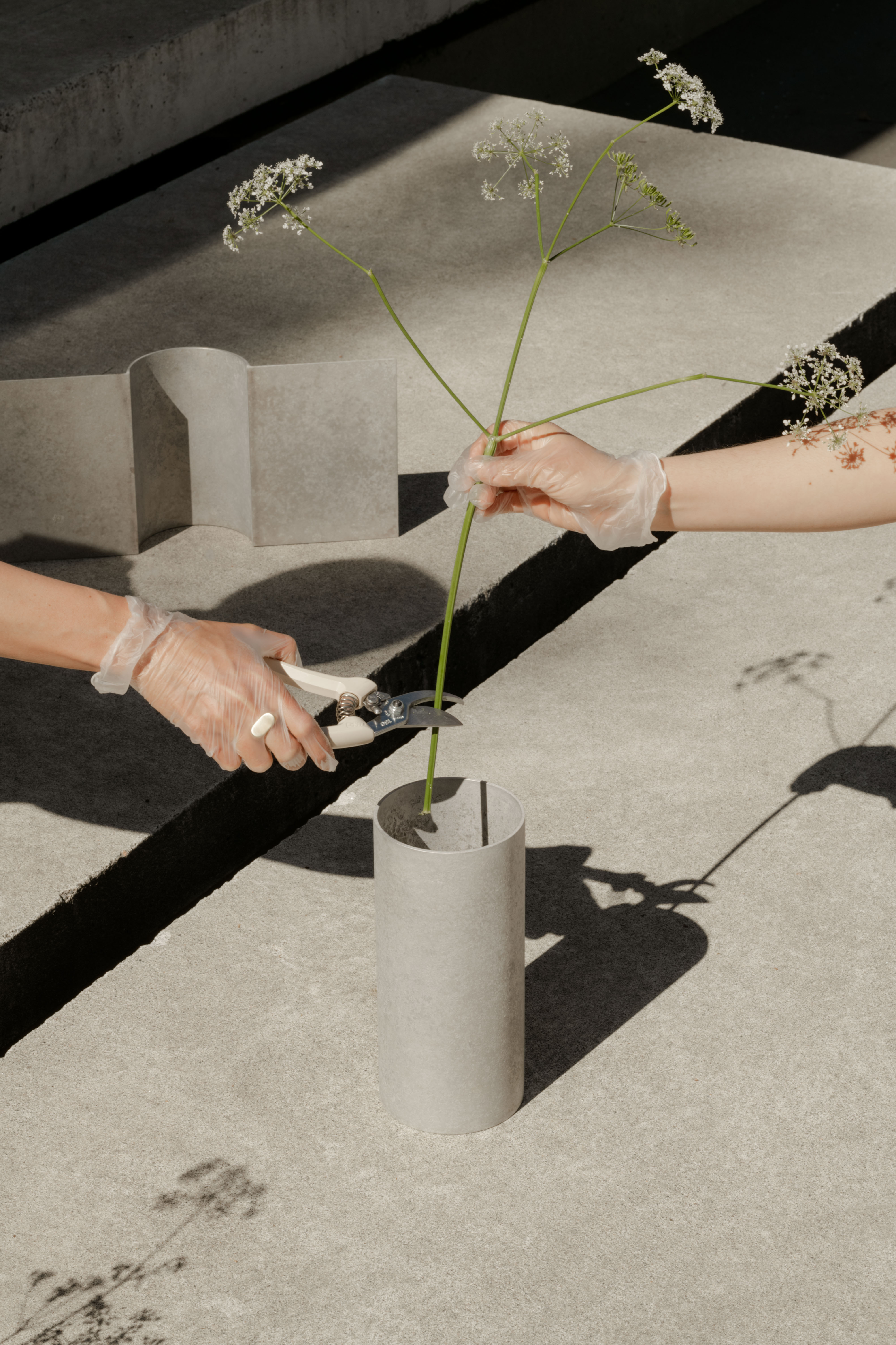 The Peel Vase Series is a three part vase series by Marcela Trejo and Alyssa Lewis. It explores the aesthetic and functional aspects of a vase and the framing of the flora within. The Peel Vase Series is composed of cylinder vases at varying heights that can be surrounded by any of the three sculptural peel forms. Together they are made of aluminum in three different finishes and can be combined in multiple configurations of texture, tone, and shape. The series references the structure of the stem of the flora it holds, where cylindrical forms and a secondary skin simultaneously separate and connect.